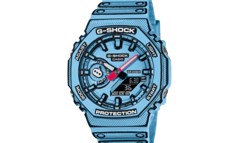 The GA-2100MNG models, especially the sky-blue GA-2100MNG-2AJR and white GA-2100MNG-7AJR, went full comic-book. Thick black outlines, screentone shading, exaggerated edges. They looked like they’d jumped straight off a page.